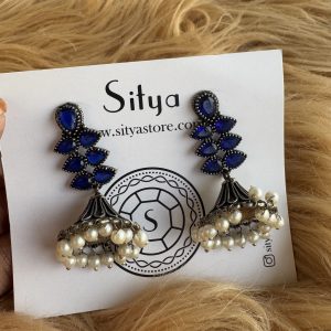 German oxidised jhumkas - Blue